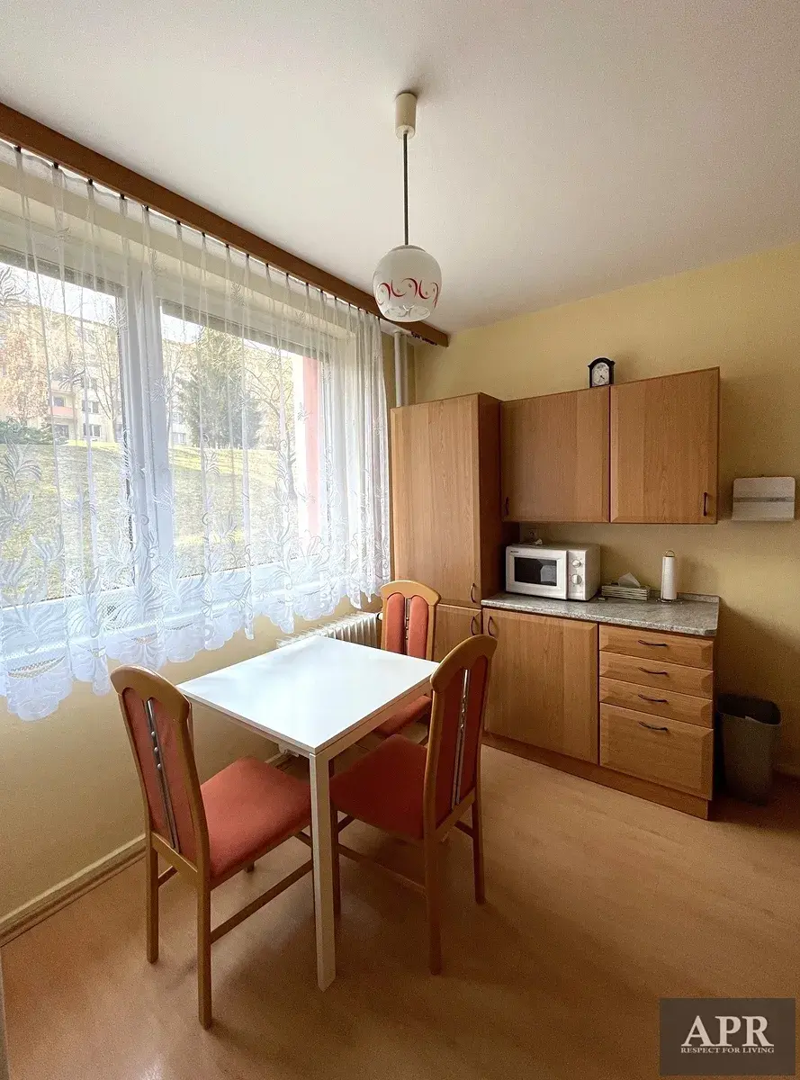 Nabízíme k pronájmu BJ, dispozičně o velikosti 1+1 ( 39,67 m2 ) která se nachází v 1:NP panelového bytového domu, který v současné době prošel celkovou revitalizací. Nová střecha, výměna oken za plastová, zateplení, fasáda, lodžie. Samotná bytová je v dobém technickém stavu, zařízená veškerým vybavením, orientovaná na západ. Topení a ohřev TV je řešeno centrálně.