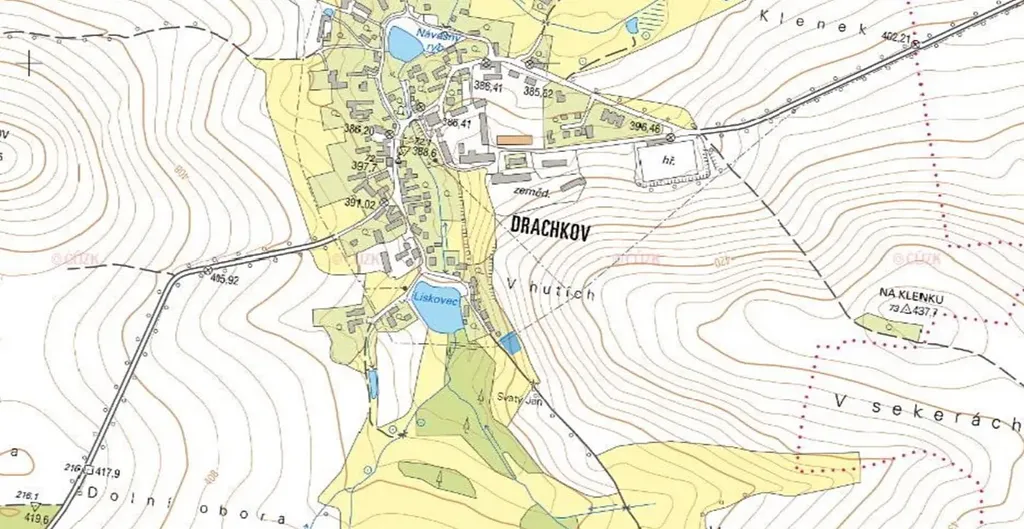 Nabízím k prodeji atraktivní stavební pozemek na okraji obce Drachkov u Bystřice na Benešovsku.