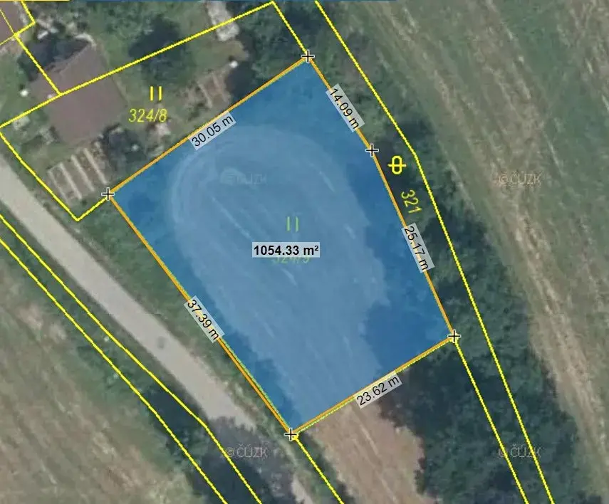 Pozemek má výměru 1046 m² a navazuje na starší zástavbu v jižní části obce, nedaleko rybníka Lískovec. Na hranici pozemku je nově zřízená přípojka elektřiny. Kanalizace a vodovod v obci nejsou, proto je potřeba počítat s vybudováním studny a jímky nebo čističky odpadních vod. Na levý okraj pozemku zasahuje ochranné pásmo nadzemního vedení elektřiny. Pozemek je přístupný po obecní zpevněné komunikaci.