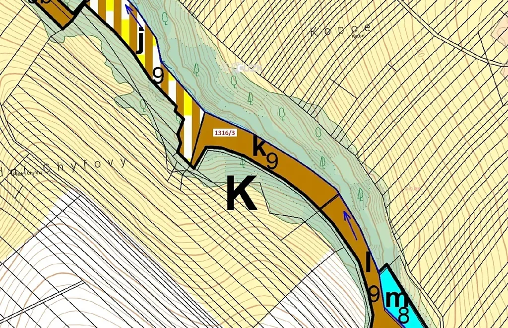 Lesní pozemek o výměře 5461 m2, parcelní číslo 1316/3, podíl 1/1, katastrální území Velký Ořechov, obec Velký Ořechov, obec s rozšířenou působností Zlín, okres Zlín, Zlínský kraj. Po těžbě.