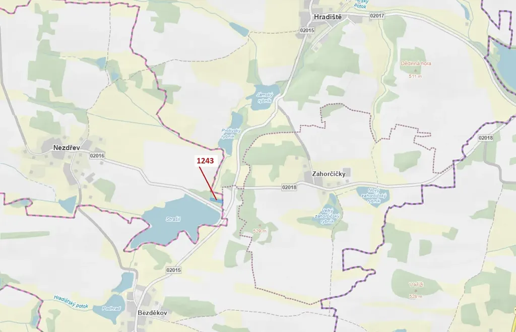 Lesní pozemek o výměře 2662 m2, parcelní číslo 1243, podíl 1/1, katastrální území Nezdřev, obec Nezdřev, obec s rozšířenou působností Nepomuk, okres Plzeň-jih, Plzeňský kraj.