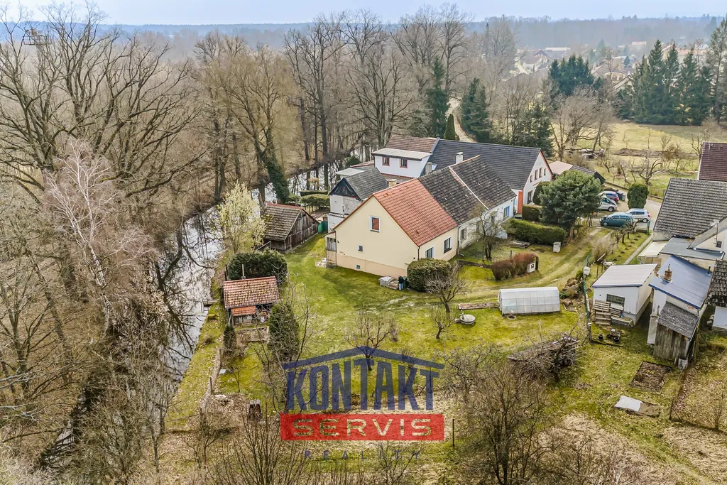 Nemovitost v přízemí nabízí prostorný obývací pokoj, ložnici, plně vybavenou kuchyň a koupelnu s WC a sprchovým koutem. Součástí přízemí jsou rovněž chodba, technická místnost a kotelna. Podkroví pak zejména pro trvalé bydlení představuje lákavý potenciál, když po úpravách zde lze vytvořit další plnohodnotné obytné prostory a výrazně tak rozšířit obytnou část domu. Objekt je připojen na veřejný vodovod, obecní kanalizaci, elektřinu 230/400 V a je zde přiveden zemní plyn, který je využíván jak pro topení i ohřev vody. Součástí nemovitosti je rozlehlá, pečlivě udržovaná zahrada o celkové výměře 1 067 m². Ta nabízí vše, co si milovník přírody může přát. Na pozemku jsou dva samostatné dřevěné objekty vhodné pro uskladnění nářadí či zahradního vybavení, vlastní studna a dostatek prostoru jak pro klidný odpočinek, tak pro pěstitelské nadšence. Vedle domu pak protéká náhon napájený z nedaleké řeky Lužnice, což umocňuje malebnost tohoto místa. Vzhledem k okolnímu reliéfu krajiny a rozlivovým plochám, není pozemek zaplavován. Dům je zasazen do klidného zákoutí stranou rušného silničního provozu, přesto disponuje skvělým dopravním spojením – v bezprostřední blízkosti se nachází vlakové nádraží i zastávky autobusových linek. Poloha na okraji obce pak přirozeně vytváří příjemné soukromí, jež ocení každý, kdo touží po klidu a harmonii každodenního života. Doporučujeme osobní návštěvu nemovitosti, kdy sami budete mít možnost posoudit unikátnost tohoto místa.