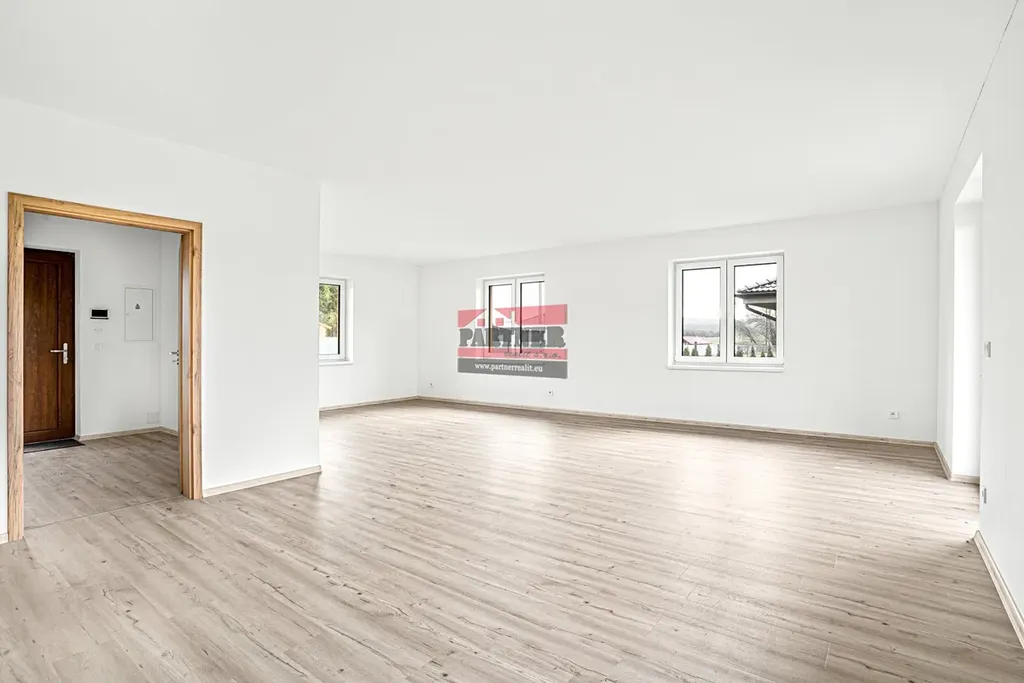 Dům nabízí celkovou plochu 138,08 m². Dispozice je prakticky řešená: prostorné zádveří (8,91 m²), světlý obývací pokoj s kuchyňským koutem (47,98 m²) a přímým vstupem na terasu, tři samostatné pokoje (11,71 m², 11,71 m² a 13,2 m²), praktická chodba (7,97 m²) s druhým vstupem do domu, koupelna se sprchovým koutem (7,31 m²) a samostatná toaleta (2,17 m²). Kvalitní vinylové podlahy podtrhují moderní a příjemnou atmosféru interiéru. Součástí domu je také přístřešek o velikosti 27,09 m² a zahradní domek o výměře 19 m². Celý pozemek o rozloze 1 182 m² je kompletně oplocený a opatřený elektrickou vjezdovou bránou.