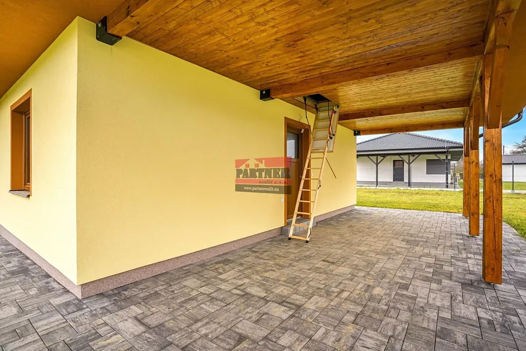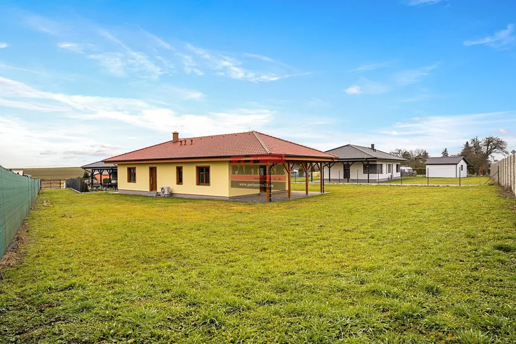 Dům nabízí celkovou plochu 138,08 m². Dispozice je prakticky řešená: prostorné zádveří (8,91 m²), světlý obývací pokoj s kuchyňským koutem (47,98 m²) a přímým vstupem na terasu, tři samostatné pokoje (11,71 m², 11,71 m² a 13,2 m²), praktická chodba (7,97 m²) s druhým vstupem do domu, koupelna se sprchovým koutem (7,31 m²) a samostatná toaleta (2,17 m²). Kvalitní vinylové podlahy podtrhují moderní a příjemnou atmosféru interiéru. Součástí domu je také přístřešek o velikosti 27,09 m² a zahradní domek o výměře 19 m². Celý pozemek o rozloze 1 332 m² je kompletně oplocený a opatřený elektrickou vjezdovou bránou.