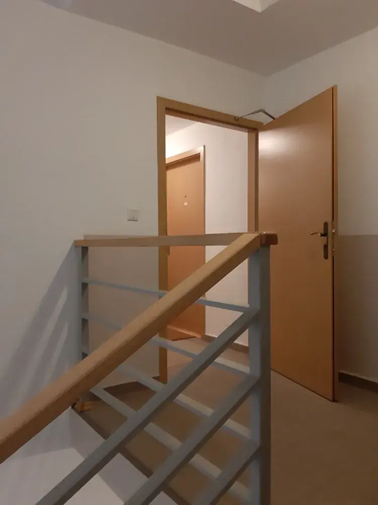 Byt ve třetím patře cihlové nástavby z roku 2004 se skládá z obývacího pokoje s kuchyňským koutem, samostatné ložnice, koupelny se sprchovým koutem a toaletou, předsíně. Kuchyňský kout má vestavěnou myčku nádobí, lednici s mrazákem, sporák s varnou deskou, digestoř. Oba pokoje mají samostatný vstup z předsíně a výstup na terasu. Terasa o ploše cca 8 m2 poskytuje dostatek místa k posezení. Na předsíni je šatní stěna se skřínkami. Další úložný prostor nabízí velká třídílná vestavěná skříň v ložnici. Na podlahách je plovoucí podlaha nebo dlažba. Vytápění a ohřev teplé vody je centrální, v domě je plynová kotelna. V suterénu domu se nalézá bezpečný sklep o ploše cca 3 m2. V bytě je možno ponechat i jídelní stůl, židle, rozkládací pohovku, palandu, šatní skříně a funkční satelit. Připojení internetu je možné. Byt má měřiče topení i spotřeby teplé a studené vody. Okna jsou platová.