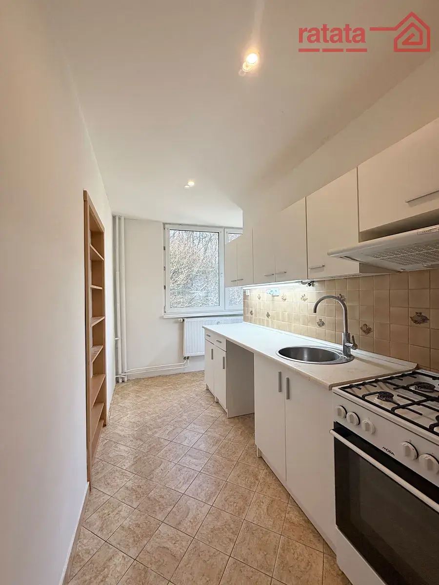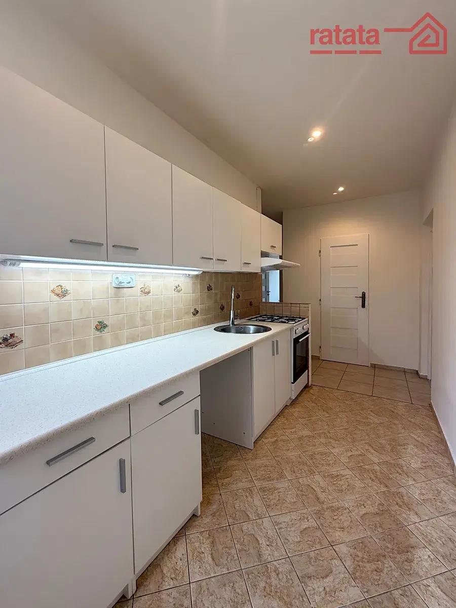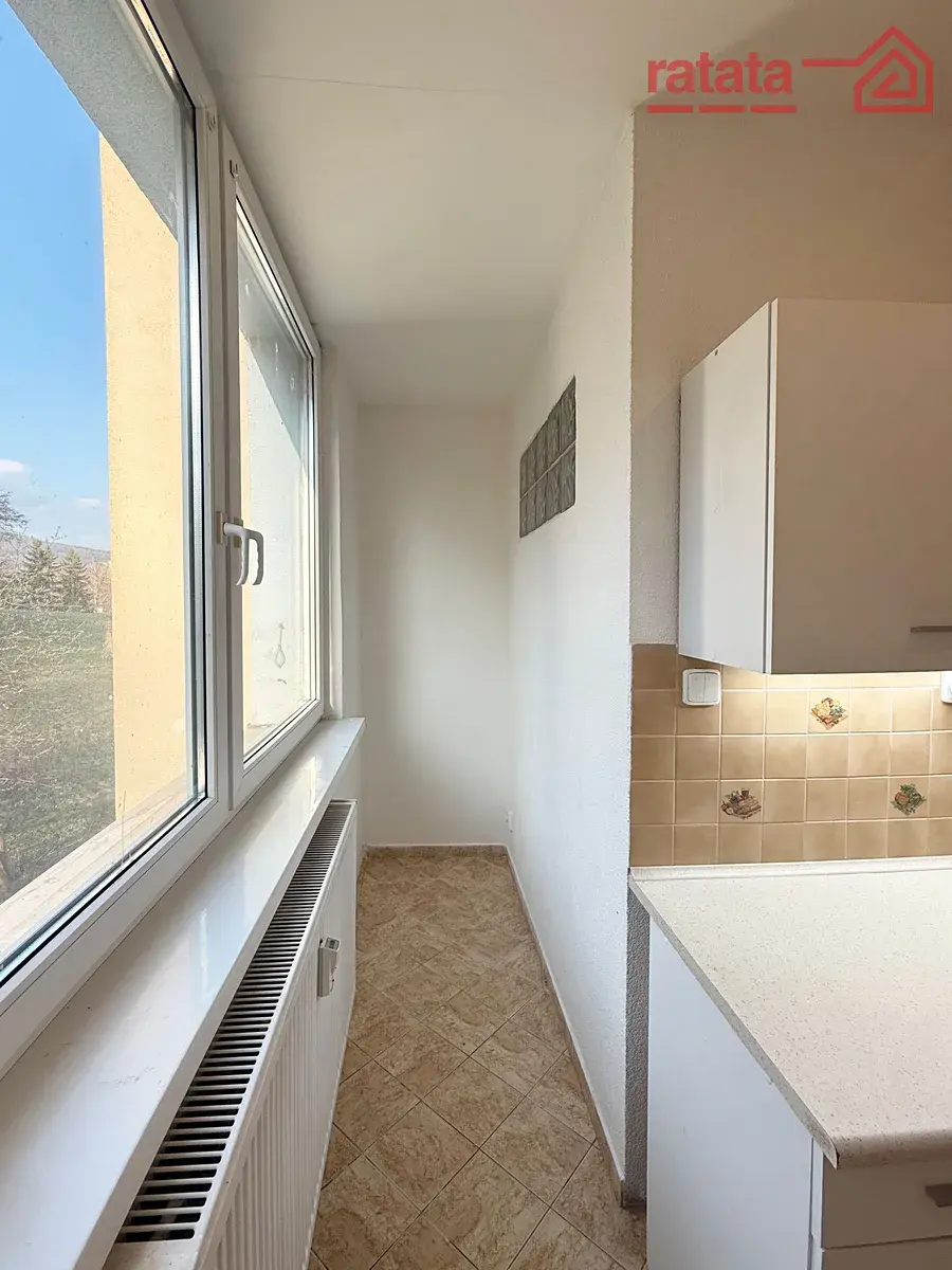 Je zde kuchyňská linka, plynový sporák, rohová vana, umyvadlo a WC. Na podlahách je položena plovoucí podlaha a dlažba. Byt je volný k nastěhování IHNED.