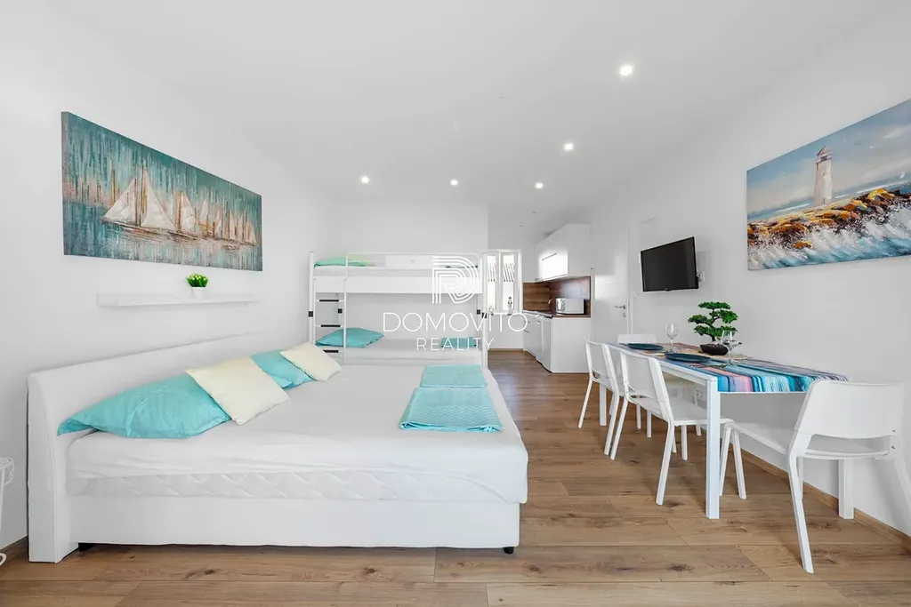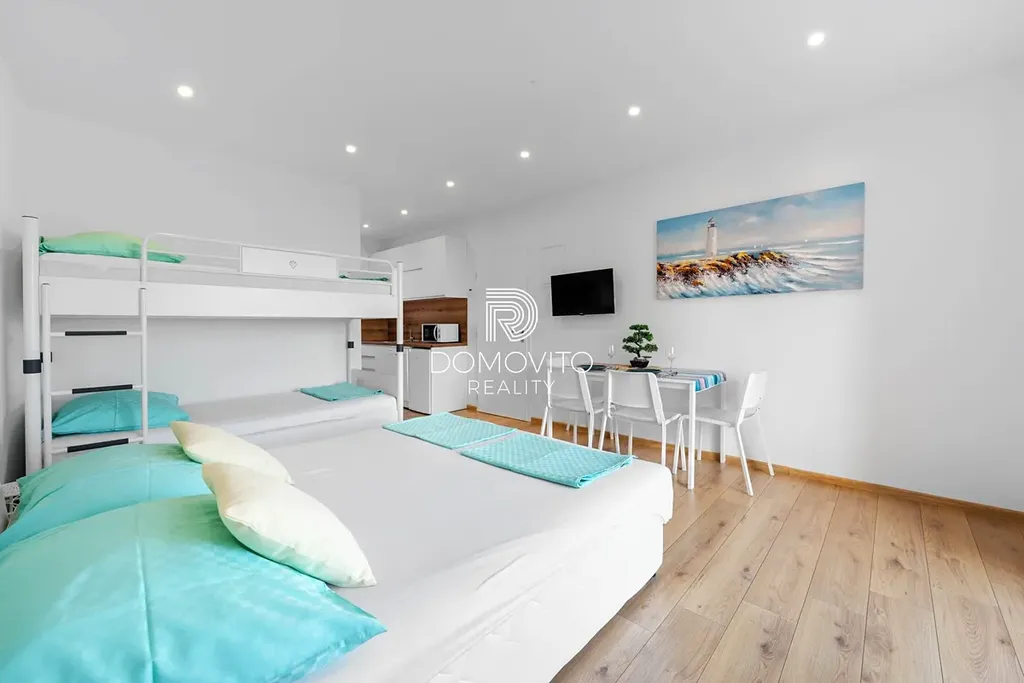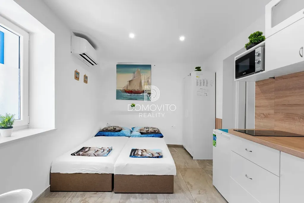 Exkluzivně Vám představujeme jedinečnou možnost investovat do nemovitosti, která kombinuje krásu přímořského života s výhodnou ekonomickou příležitostí. Nabízíme k prodeji dům s pěti apartmány, který se nachází na kouzelném ostrově Pag, pouhých 300 metrů od azurově modrého Jaderského moře.