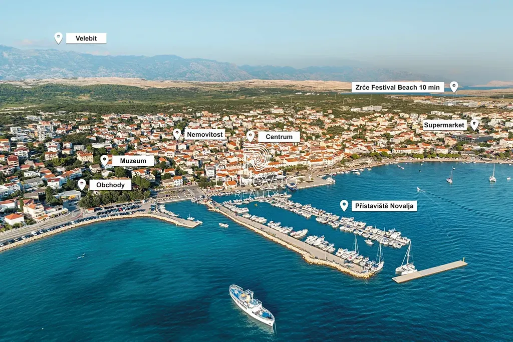 Ostrov Pag je známý svými nádhernými plážemi, křišťálově čistou vodou a bohatým kulturním dědictvím. Dům je umístěn v klidné oblasti, která poskytuje perfektní rovnováhu mezi soukromím a snadnou dostupností všech místních atrakcí a služeb.