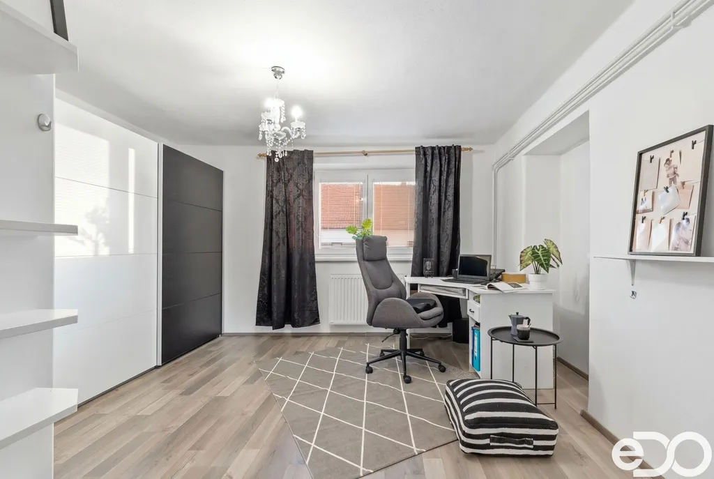 Dispozičně nabízí kuchyni s komorou, tři obytné pokoje, koupelnu a sociální zázemí.