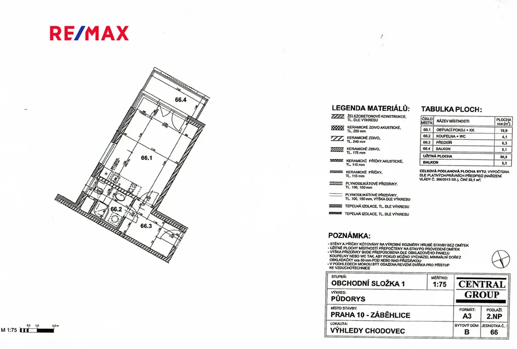 Byt o velikosti 30.3 m² a balkonem 5.1 m² se nachází v 2.NP domu s výtahem a pronajímá se částečně zařízený.