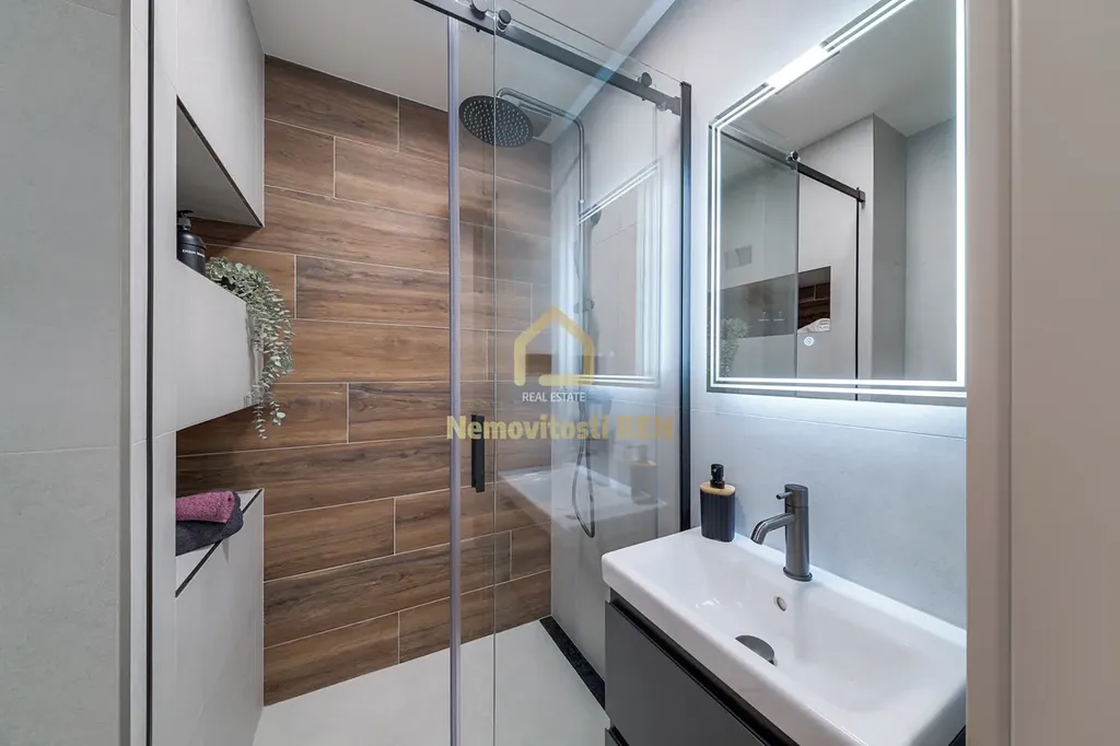 Byt prošel kompletní a velmi pečlivou modernizací, která z něj vytvořila svěží a nadčasový prostor připravený k okamžitému užívání. Dominantou interiéru jsou nové, precizně provedené podlahy s kvalitní vinylovou krytinou, které podtrhují čistý a moderní vzhled celého bytu.