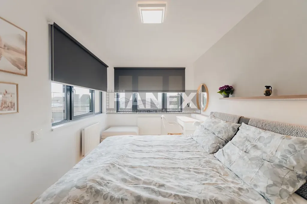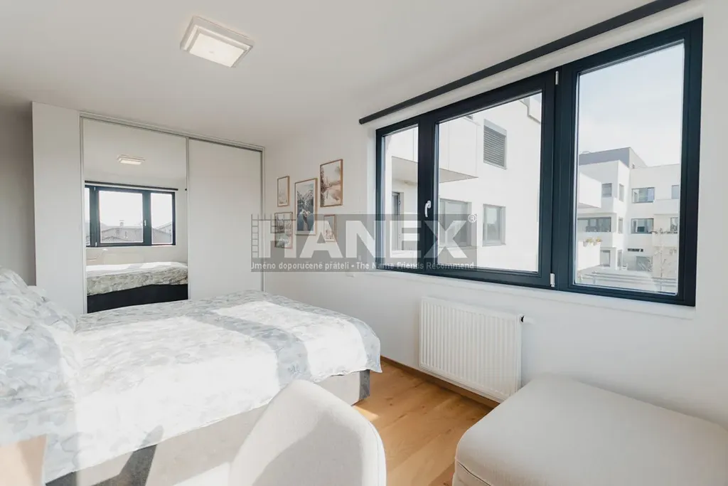 Užívejte si bezstarostného a vysoce komfortního bydlení v tomto krásně zařízeném bytě ihned k nastěhování. Tento světlý a prostorný moderní byt (96 m2 + 5,8 m2 balkon) se nachází v 1. patře rezidenčního projektu dokončeného v roce 2022. Nabízí dvě ložnice, samostatnou kancelář, dvě koupelny, úložný prostor, prádelnu, balkon, sklep, garážové stání a další soukromé venkovní parkovací místo.