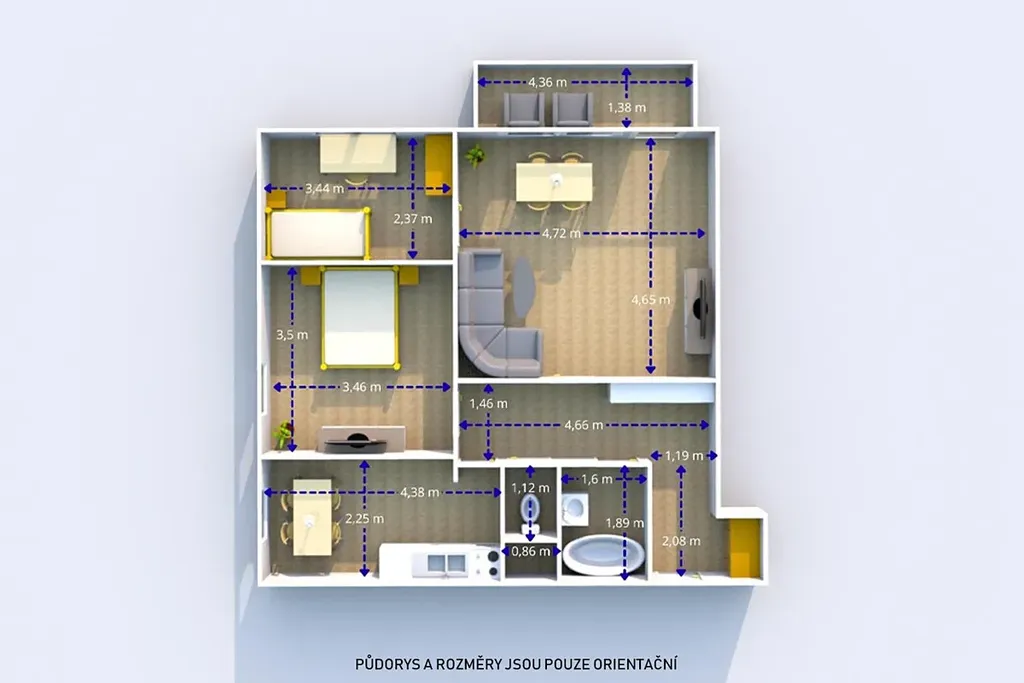 Uvedené výměry a půdorys jsou orientační.