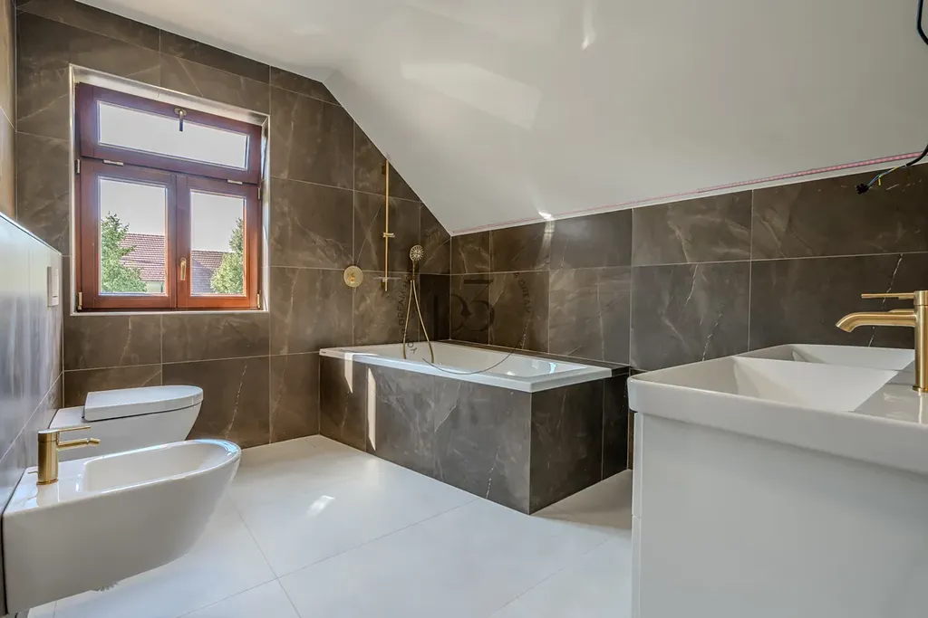 Dům je postavený z vysoce kvalitních materiálů, kondenzované plynové kotle Baxi, podlahové vytápění, příprava na klimatizace a kuchyně, koupelny jsou vybaveny kvalitní sanitou např. značky Villeroy&Boch. Energetická náročnost budovy je B.