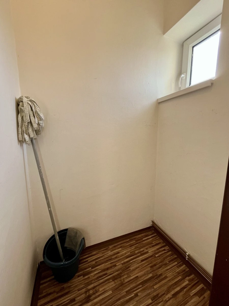 Dispozice bytu nabízí prostornou vstupní chodbu s vestavěnou šatní skříní a vstupy do jednotlivých místností – koupelny, samostatné toalety, kuchyně a na balkon. Z kuchyně se vstupuje do neprůchozího pokoje, který zajišťuje dostatek soukromí. Disponuje gaučem, postelemi a skříní.