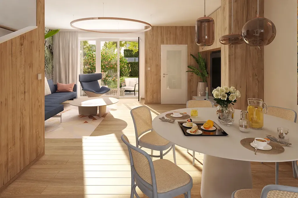 Dům je ve fázi výstavby a je součástí exkluzivní nabídky s cenou 8390 000 Kč. Energetická třída B s instalovanými fotovoltaickými panely svědčí o nízkoenergetickém zaměření domu, což může přinést úsporu na dlouhodobých nákladech na energiích. Dům je vytápěn podlahovým topením, je napojen na veřejný vodovod a kanalizaci, přiveden je optický kabel internetu.