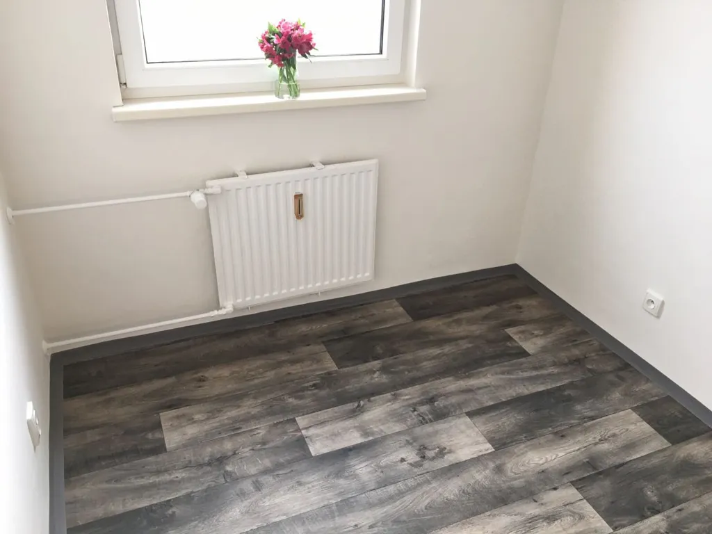 Byt prošel rekonstrukci v roce 2021 a má vyzděné jádro, podlahy, rozvody, omítky, interiérové dveře. Koupelna s vanou a umyvadlem, toaleta je součástí koupelny. Kuchyňská linka je opatřena plynovým sporákem a elektrickou troubou s možností připojení pračky.