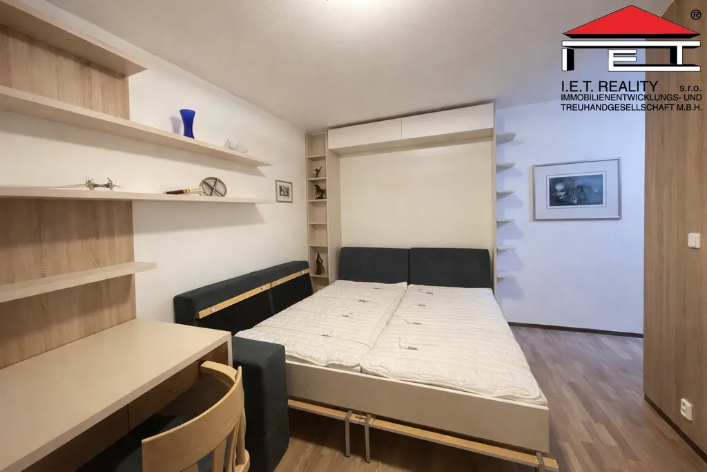 Pronájem plně vybavené bytové jednotky 1+kk, situované ve 4.NP polyfunkčního, bezbariérového domu s výtahem a zahradou v blízkosti centra města. Byt je po kompletní rekonstrukci, s maximálním využitím úložného prostoru, vhodný pro 1 osobu. Součástí vybavení je kuchyňský kout, s mikrovlnnou troubou, stůl, židle, dvoumístná sedací souprava, s kvalitním výklopným lůžkem. K bytu je možno využít vyhrazené garážové místo za měsíční poplatek 4.000,- Kč. K pronájmu volný od 1.5.2026.