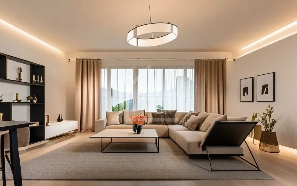 V 1. nadzemním podlaží se nachází prostorný obývací prostor propojený s kuchyní, který působí velmi vzdušně. Dále je zde ložnice, koupelna s vanou a výstup na příjemnou slunnou terasu o velikosti 12 m².