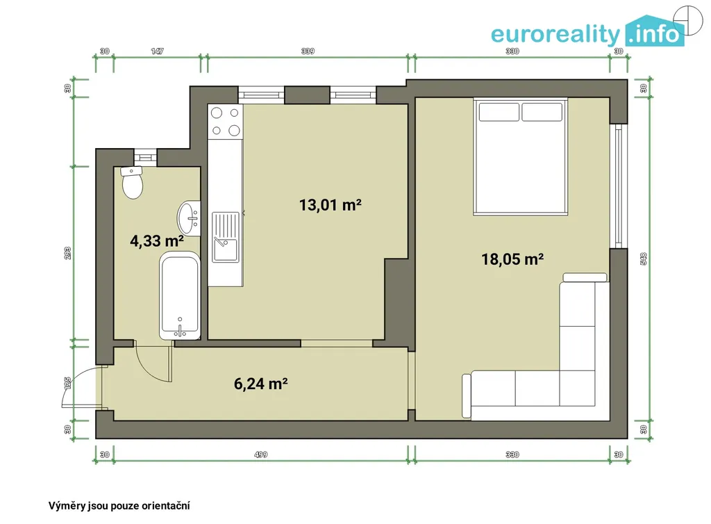 Prodej bytu 1+1, Cheb, 17. listopadu, 34 m2