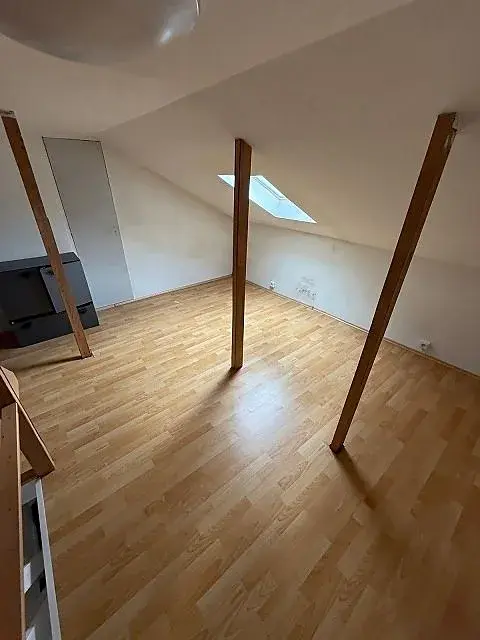 V podkroví domu se nachází větší otevřený prostor, nyní sloužící jako kancelář.