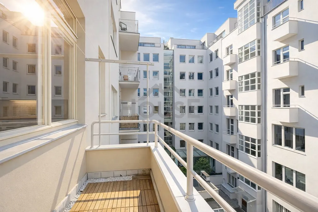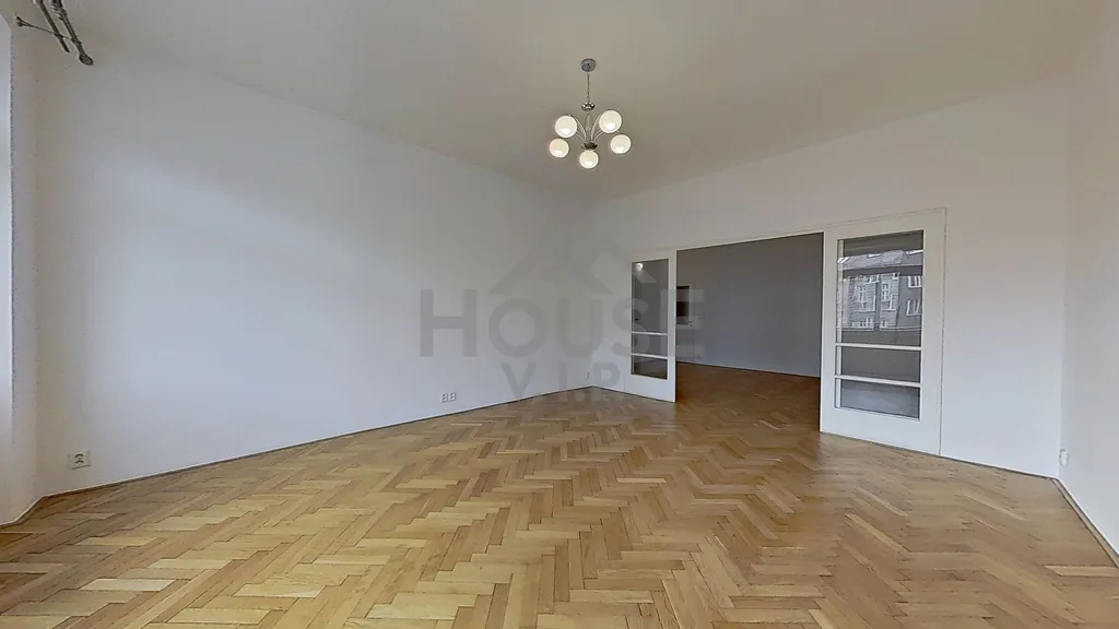 Byt se nachází ve 3. patře domu ze 30. let s výtahem a velkoryse řešenými byty, s vysokými stropy a velkými francouzskými okny, která zajišťují výjimečnou světlost všech obytných místností. Komfort bydlení podtrhují zachovalé dubové parkety ve všech pokojích a na svou dobu převratné stropní vytápění, které zajišťuje rovnoměrné a úsporné teplo bez rušivých radiátorů.