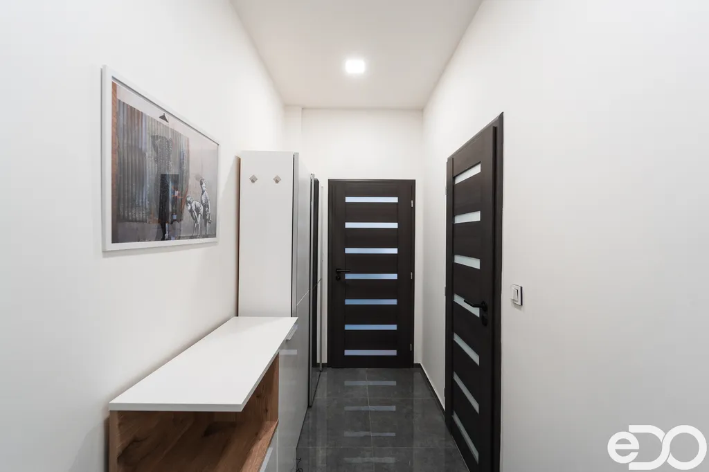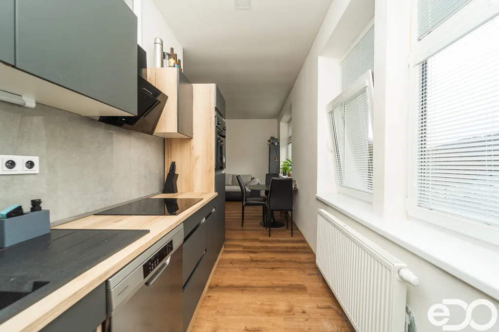 Právě takový je tento 1+kk v Machníně, v ulici Rynoltická. Nachází se v prvním nadzemním podlaží zatepleného cihlového domu, který prošel v roce 2023 vydatnou rekonstrukcí. Společné prostory působí čistě a upraveně, v domě nyní probíhají poslední dokončovací práce.