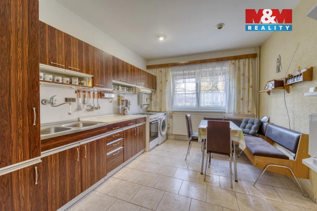 RD je řešen jako 5+1 ve dvou nadzemních podlažích. V přízemí se nachází kuchyně, obývací pokoj, pokoj, koupelna se sprchovým koutem a samostatné WC. V patře je prostorný obývací pokoj, ložnice, komora a balkon. Včetně zařízení. Vytápění je ústřední plynové.