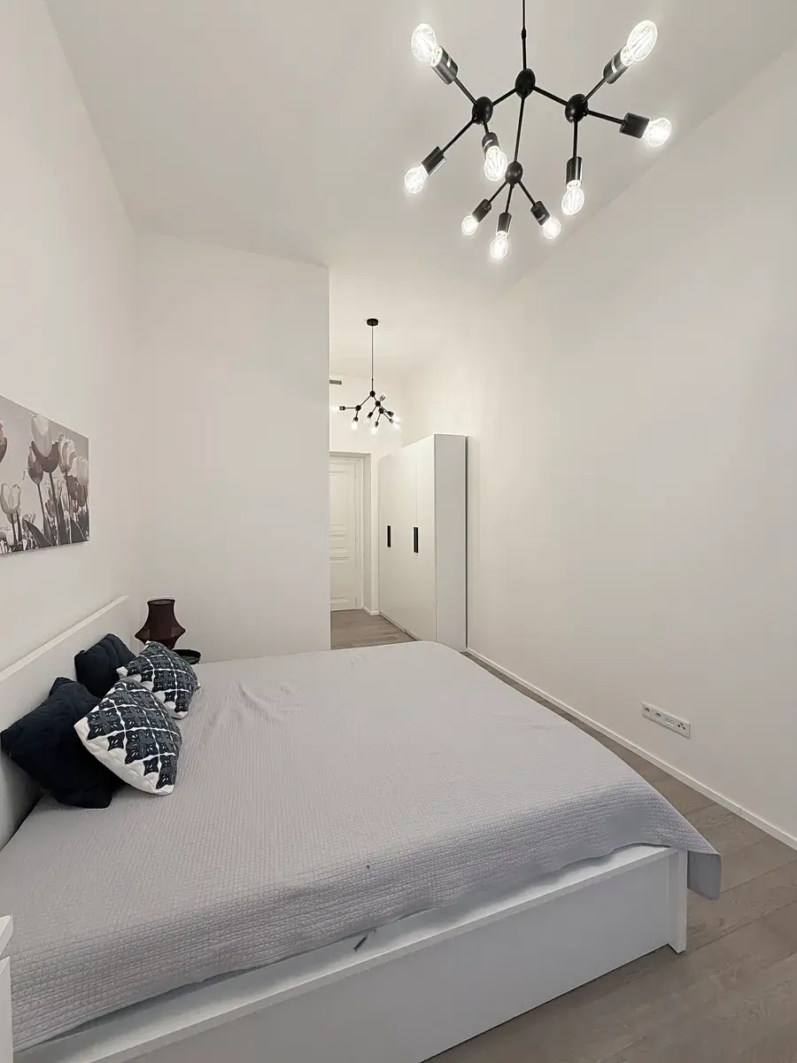 Byt se nachází ve 3. patře s výtahem a je kompletně zařízený. Vysoké stropy, špaletová okna a dřevěné podlahy vytvářejí velmi příjemnou a reprezentativní atmosféru. Interiér je proveden ve vysokém standardu, s důrazem na kvalitní materiály, designový nábytek a moderní technické vybavení, které dokonale ladí s reprezentativním charakterem této výjimečné lokality.