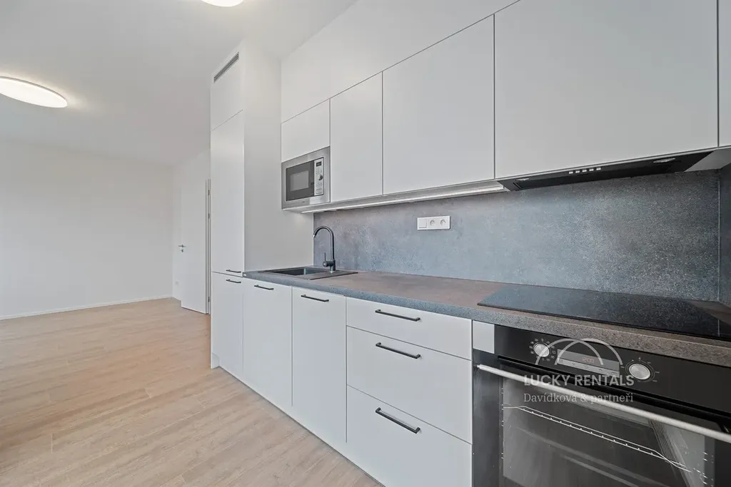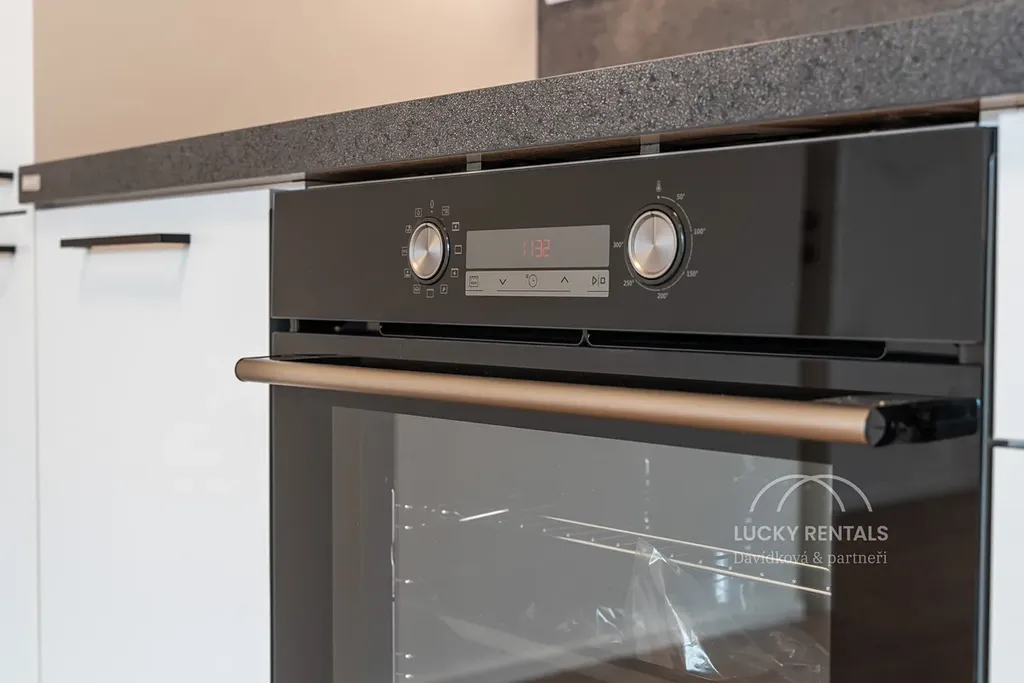 Byt se pronajímá nezařízený, ve vysokém standardu, vybavený novou kuchyňskou linkou značky Oresi s vestavěnými spotřebiči na míru (myčka nádobí, lednice, varná deska, trouba, digestoř). Bezpečnostní vstupní dveře značky Sapeli, vinylové podlahy, dlažba, kvalitní sanita v koupelně. K bytu náleží sklep.