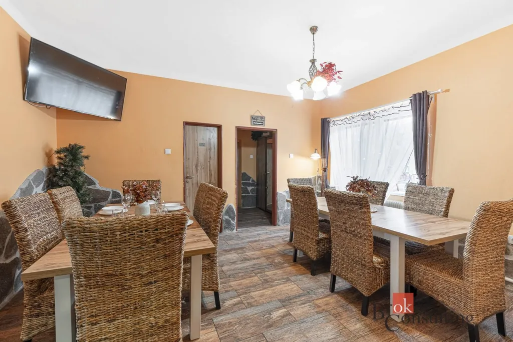 Hledáte výjimečnou příležitost pro další využití - od rozšíření kapacity pro vlastní bydlení či podnikání pod jednou střechou v krásné přírodě Jizerských hor? Nabízíme k prodeji penzion, který se nachází poblíž Albrechtic v Jizerských horách, v těsné blízkosti Tanvaldského Špičáku. Tento stylový a plně vybavený penzion s kapacitou 22 lůžek je ideální pro milovníky přírody a aktivního odpočinku. Součástí penzionu je i soukromý apartmán pro majitele se 4 lůžky a samostatnou kuchyní a terasou.