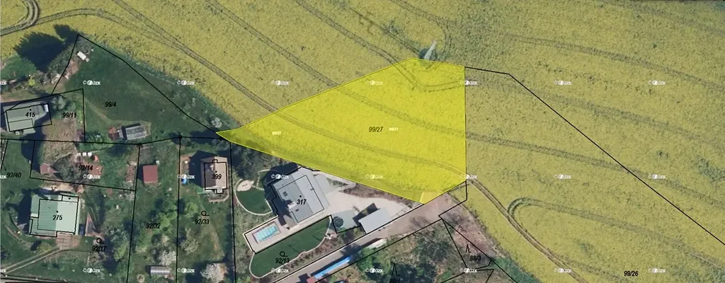 Pozemky patří pod LV: 2163, parcelní číslo: 99/27.