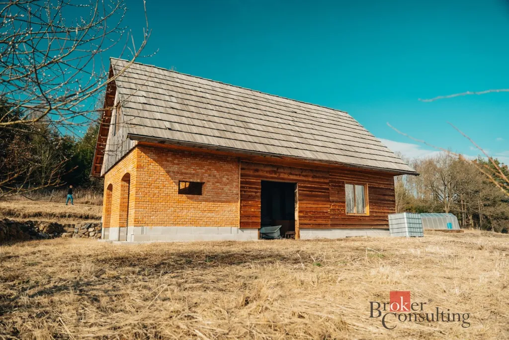 Pozemek je přirozeně rozdělen biokoridorem stromů na horní a dolní část. Horní část je určena ke stavbě rodinného domu a zahrnuje kompletní projektovou dokumentaci. Stavební povolení je vydáno na stávající stavbu, která bude sloužit jako stodola (hospodářské stavení) a zároveň umožní schválení stavebního povolení pro rodinný dům. Na této části je připravená příjezdová komunikace, tři parkovací stání a vybudovaná permakulturní zahrada se záhony, skleníkem, jezírkem a ovocnými dřevinami.