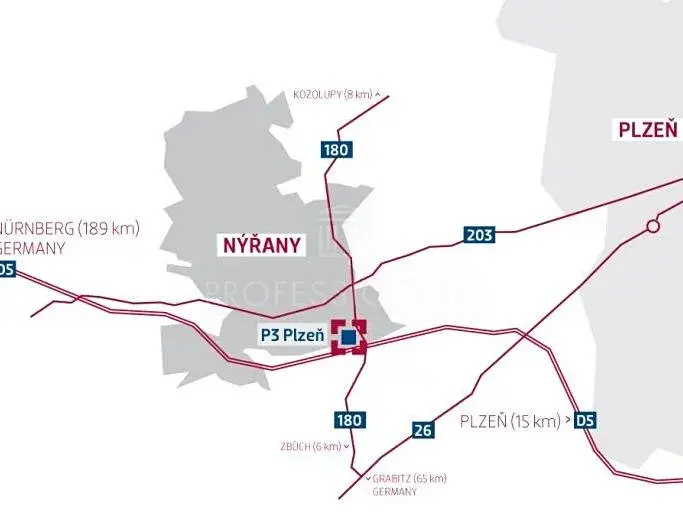 Pronájem skladových a výrobních prostor. Park se nachází v těsné blízkosti dálničního tahu D5/E50 ve směru Praha-Norimberk. Celková plocha areálu více než 43.998 m2. Světlá výška pod vazníkem min. 10 m, prefabrikovaná železobetonová konstrukce, minimálně 2% světlíků v celkové ploše střechy, střešní konstrukce s minerální izolací a vyztuženým PVC pláštěm, nakládací rampa minimálně na každých 1.000 m2 skladových prostor. Průmyslové podlahy vhodné pro automatické nakládací systémy, nosnost 5t/m2. K dispozici skladová jednotka 5460 m2 a samostatné kanceláře až 600 m2.
