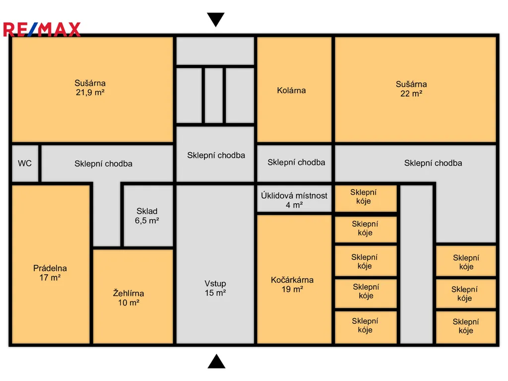 Prostorné společné prostory: prádelna, sušárna, kolárna, kočárkárna, sklad, WC