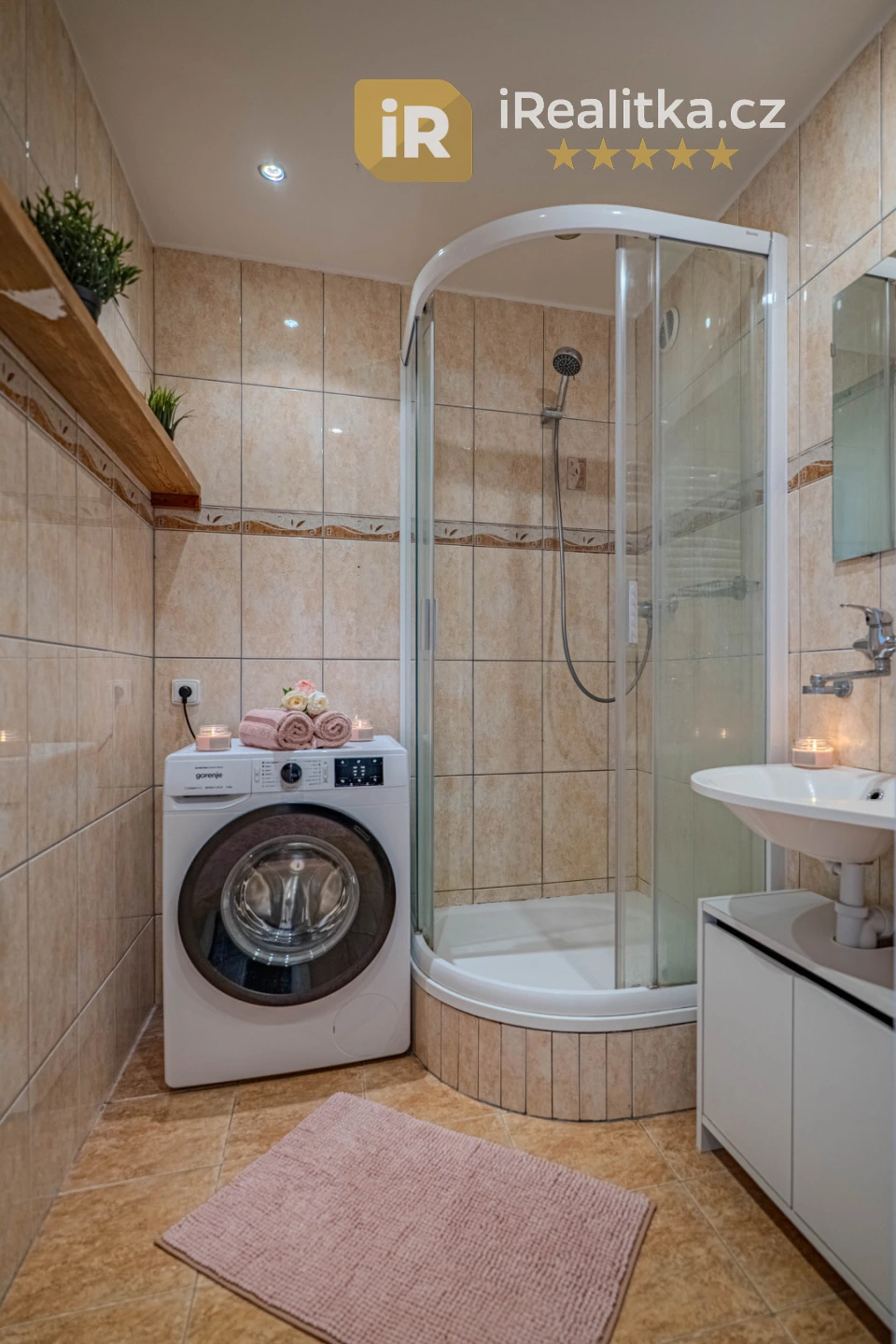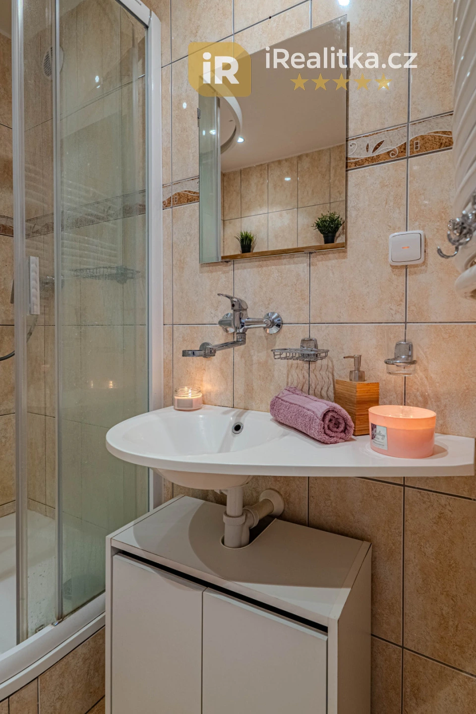 Dále pak v bytě nalezneme ložnici a dětský pokoj, které jsou naopak orientovány na východ. Z prostorné chodby se pak dostaneme také do koupelny se sprchovým koutem, samostatné toalety a praktické komory.