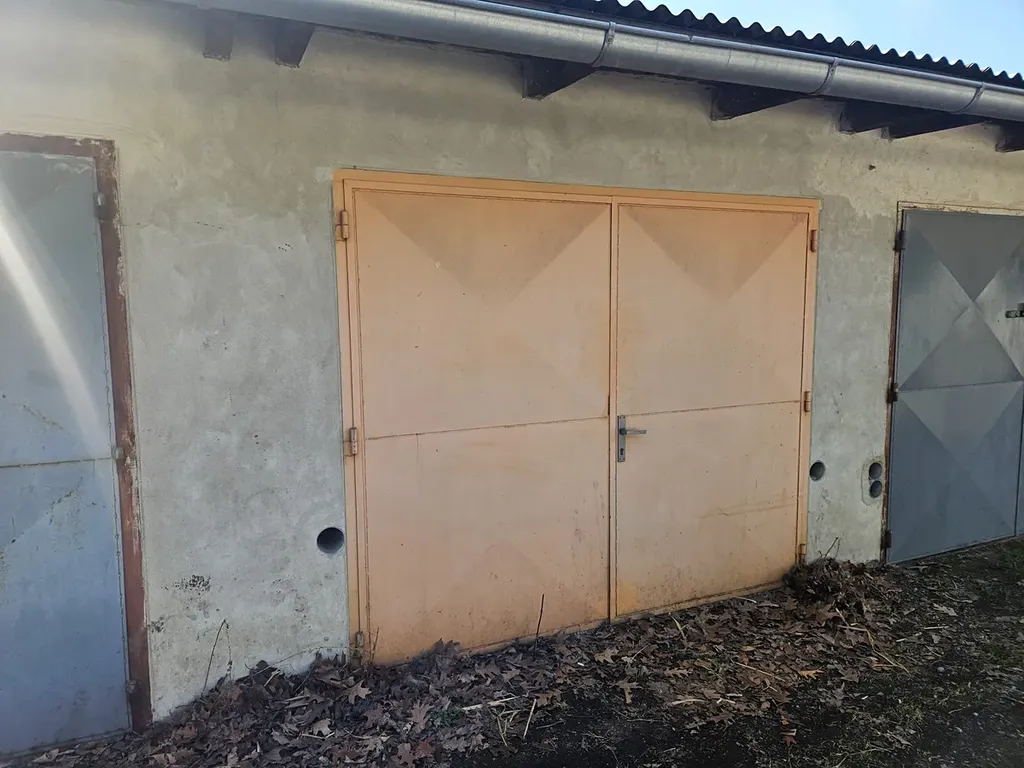 Střecha garáže je pokryta pozinkovaným plechem, garáž má betonovou podlahu a ocelová vrata, samozřejmostí je nová výmalba. Garáž je napojena na elektřinu 230 V. Výstavba garáže proběhla v roce 2008.