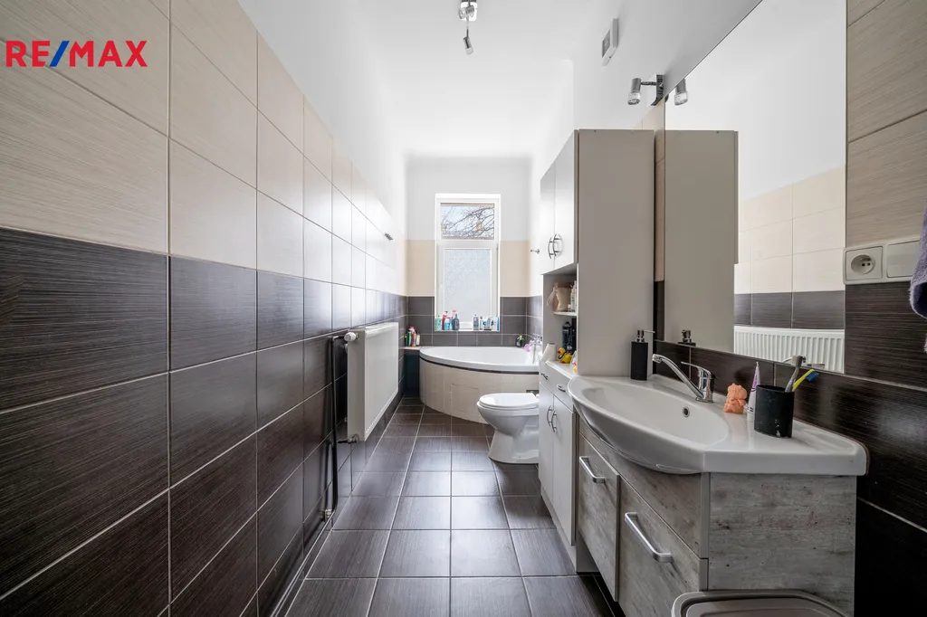 K bytu náleží velká terasa o výměře 22,8 m² a nabízí tak praktickou dispozici tří samostatných pokojů, prostornou obytnou kuchyň s jídelnou, koupelnu s vanou, WC a vstupní chodbu. Díky umístění ve vyšším podlaží působí byt světlým a klidným dojmem.