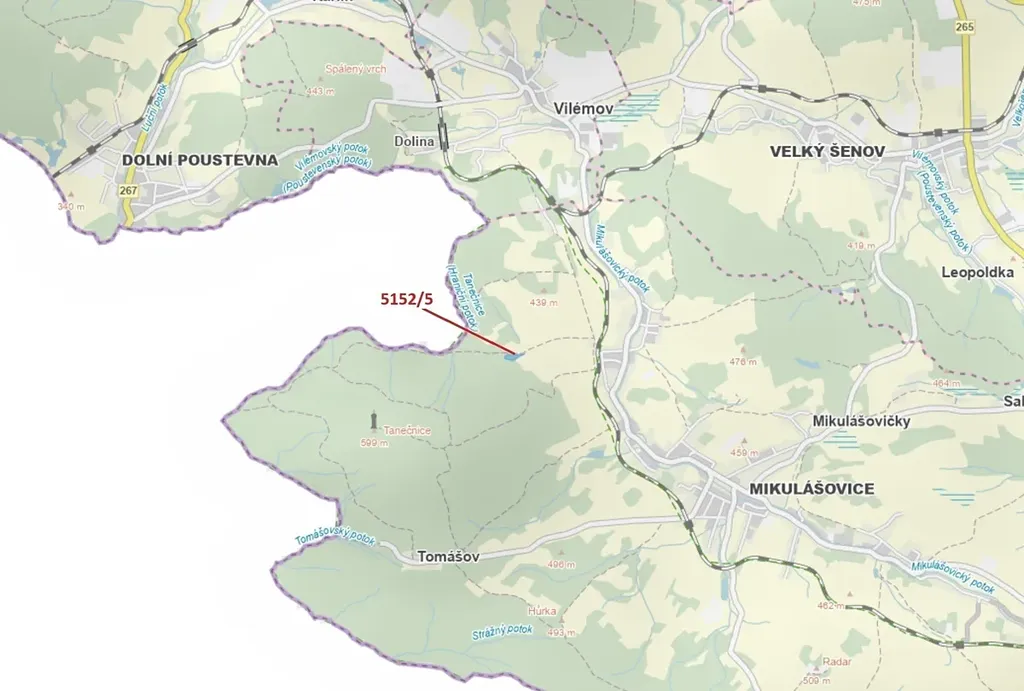Lesní pozemek o výměře 4 741 m2, parcelní číslo 5152/5, podíl 1/1, katastrální území Mikulášovice, obec Mikulášovice, obec s rozšířenou působností Rumburk, okres Děčín, Ústecký kraj. Po těžbě.