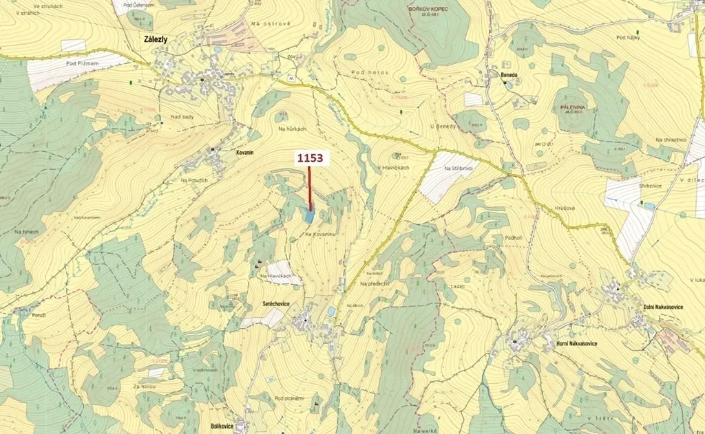 Ostatní plocha o výměře 3813 m2, parcelní číslo 1153, podíl 1/1, katastrální území Setěchovice, obec Zálezly, obec s rozšířenou působností Vimperk, okres Prachatice, Jihočeský kraj.
