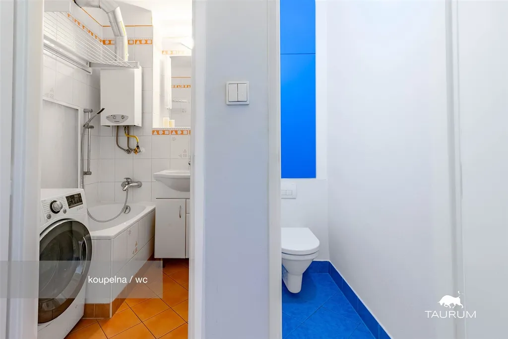 K bytu patří pěkný zděný sklep v suterénu domu včetně stěnově umístěných kvalitních regálů Element s modřínovými policemi. V domě je prostorná kolárna/kočárkárna patřící jen k tomuto vchodu. Parkování je bez zón v okolí domu.