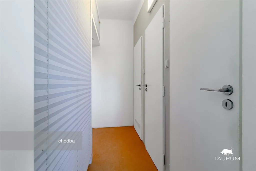 Samotný byt je ve výborném stavu, za poslední roky byl průběžně renovovaný a je skvěle udržovaný. Dominantou tohoto bytu je hezká kuchyňská linka, veliké množství úložného prostoru, v policích, které jsou v SDK vestavbě v prostorné předsíni a vše je schováno za minimalistickým plisé, dále je zde LED podsvícení, úložný prostor i v jádře za WC, z venku větraná komora s modřínovými regály na uskladnění potravin, nepotřebných nebo úklidových věcí. Okna i balkonové dveře v bytě jsou velká a plastová a vybavena vnitřními žaluziemi, balkonové dveře jsou vybaveny navíc venkovními žaluziemi typu "Z", motor Somfy. Na balkoně je umístěn stabilní sušák na prádlo.