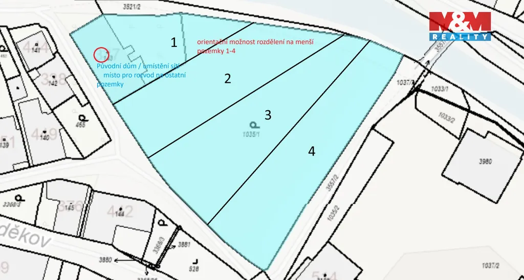 Cena je k jednání / Předmětem prodeje je pozemek o výměře 3 534 m² (druh: zahrada) a navazující stavební parcela č. 143 (596 m²), na které stojí starší dům č.p. 337 – celková výměra činí 4 130 m². V případě zájmu o menší část například k výstavbě RD lze pozemek o výměře 3 534 m² rozdělit po dohodě na 3 menší o orientační velikosti cca 1200 m².
