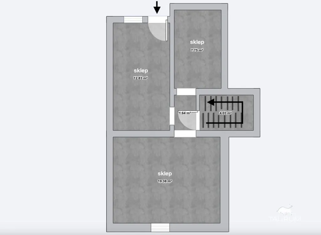 > 1PP (42 m2) sklep (částečně podsklepeno) skladovací a technické zázemí