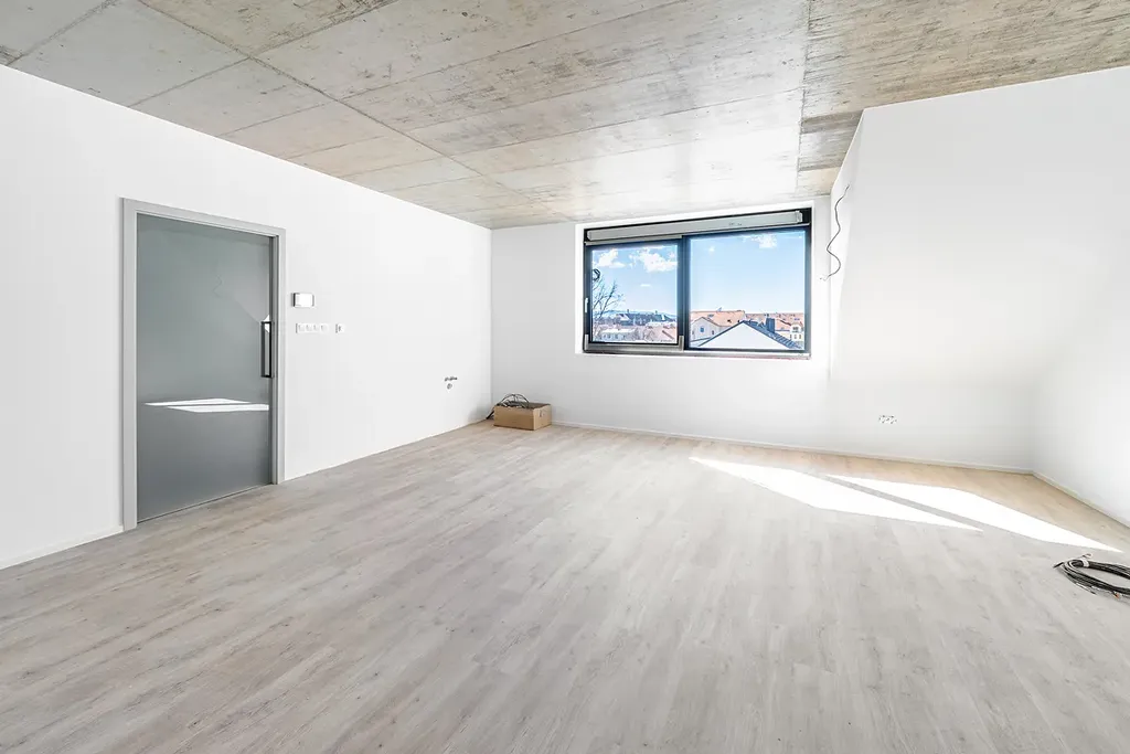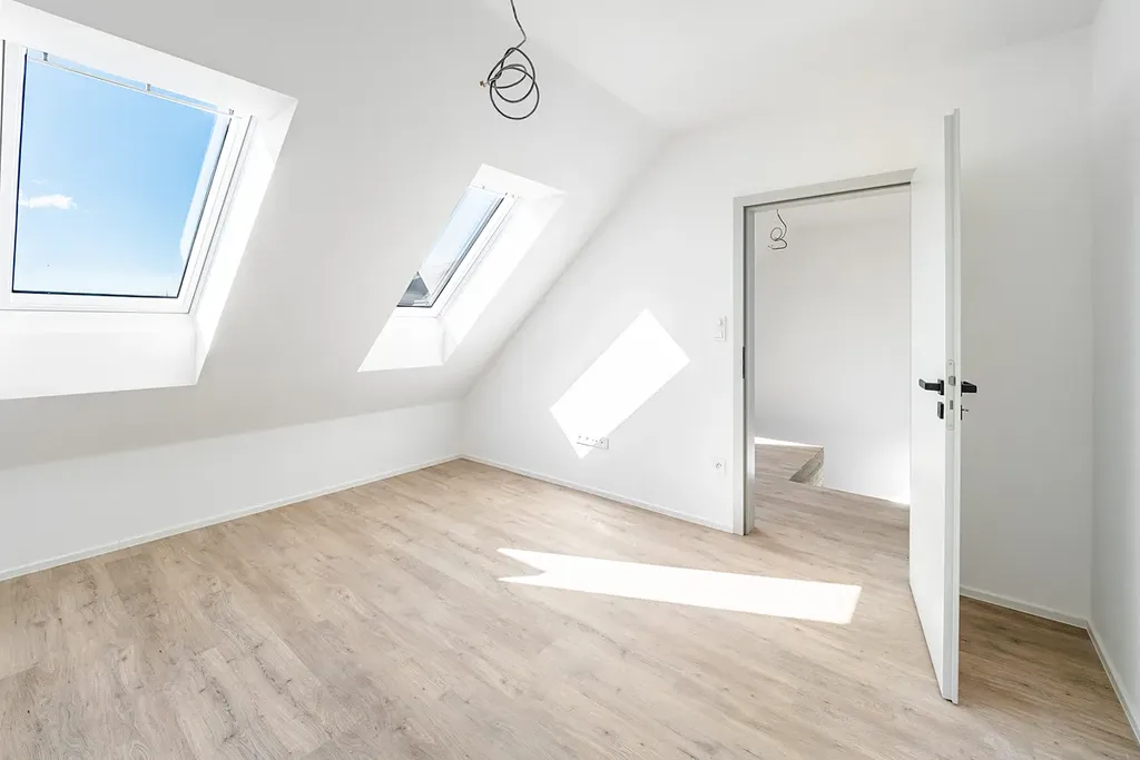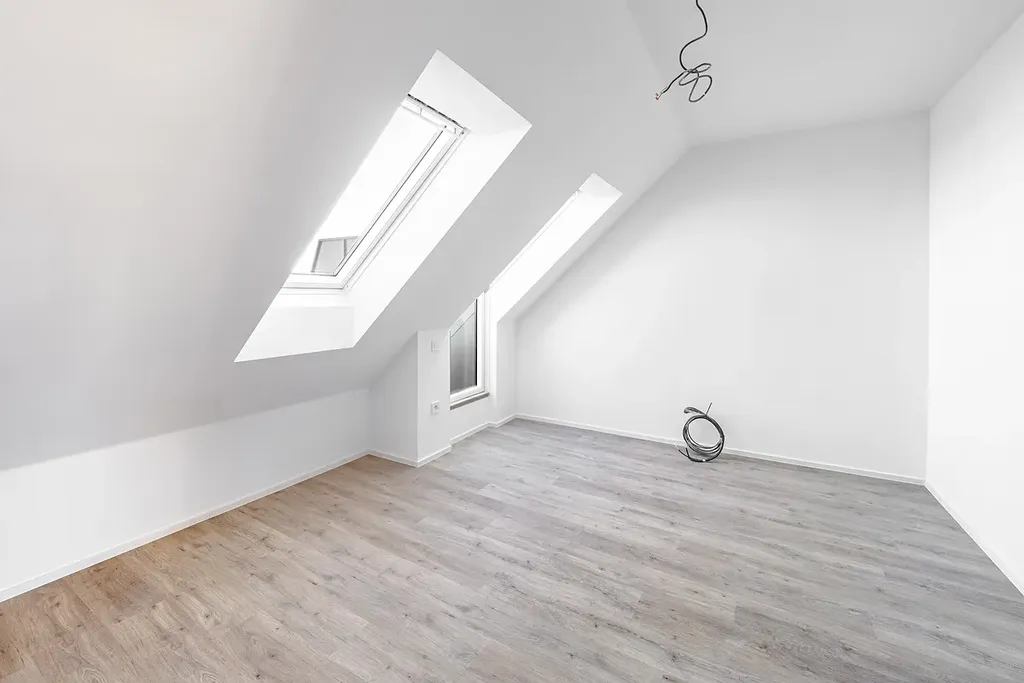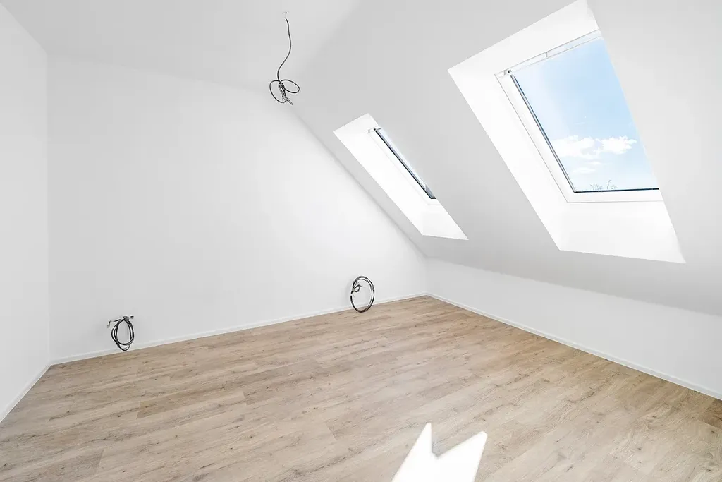 Dispozice bytu nabízí vstupní chodbu, prostorný a světlý obývací pokoj s kuchyňským koutem, ložnici, koupelnu a technickou místnost se samostatným WC. Velkoformátová okna a střešní okna dodávají interiéru dostatek přirozeného světla a podtrhují vzdušnost celého prostoru.