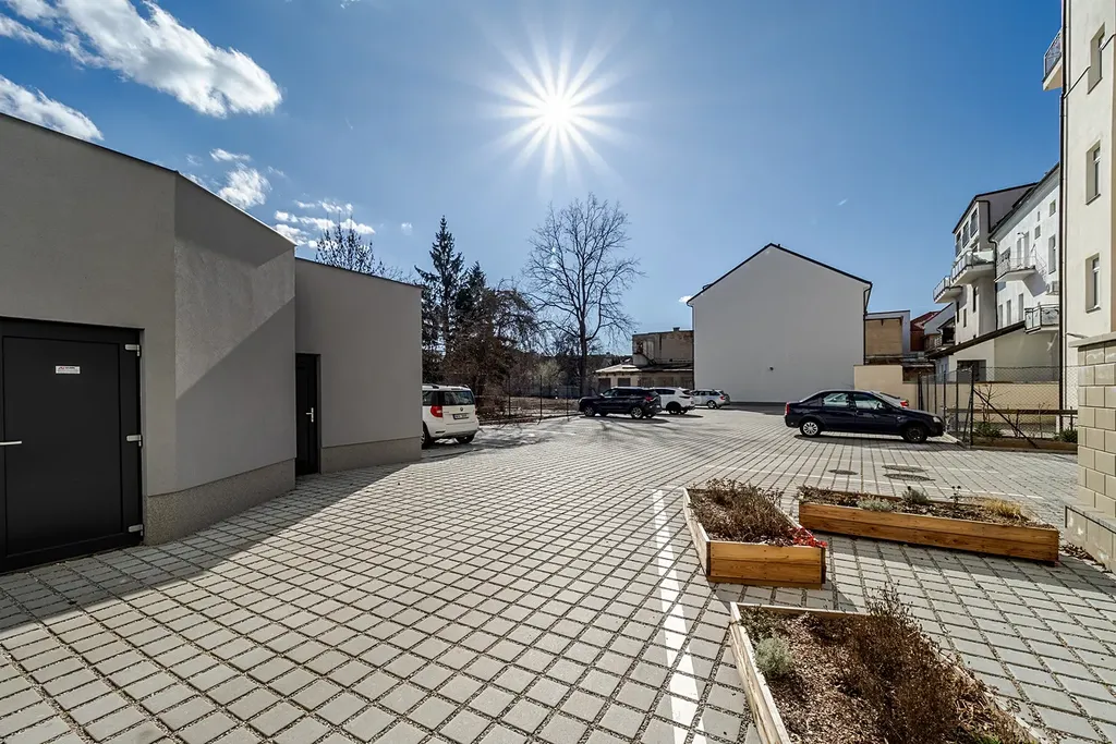 Parkovací stání je možné k bytu dokoupit, což představuje v centru města velmi cennou výhodu.
