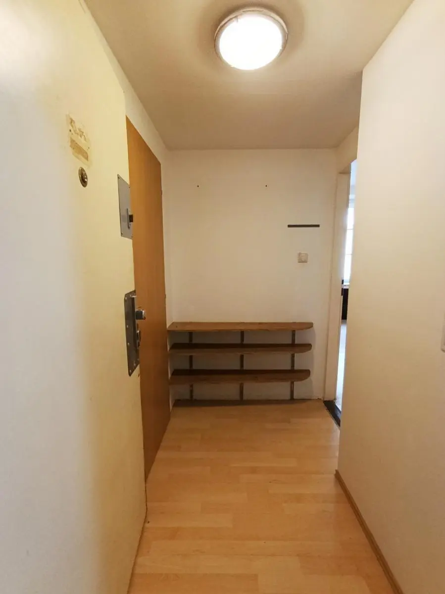 Praktická dispozice bytu zahrnuje předsíň se vstupem do koupelny s toaletou a do kuchyně (13 m2), ze které se vstupuje do ložnice (16 m2). Standardem bytu jsou špaletová okna s orientací do vnitrobloku, plovoucí lamino podlaha, sprchový kout, kombi WC, novější interiérové dveře. kombinovaný sporák, starší kuchyňská linka. Ohřev vody pro byt zajišťuje elektrický bojler v koupelně, vytápění pak plynové těleso WAW v ložnici.