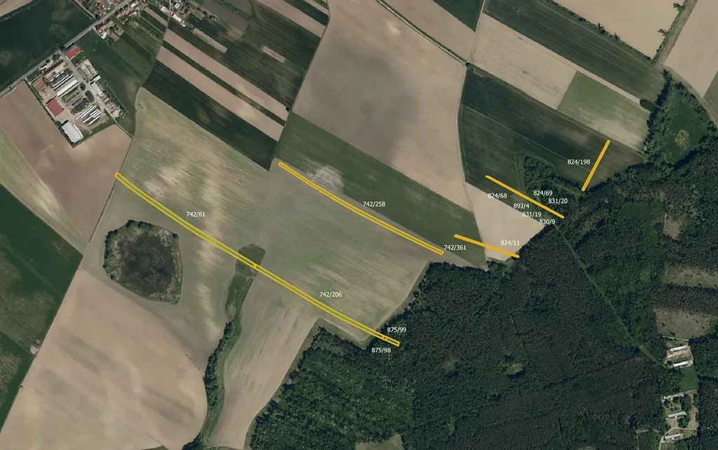 Celková výměra těchto pozemků činí 18 279 m². Z toho je 17 427 m² orné půdy.