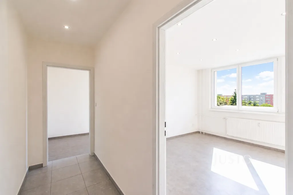 Předmětem prodeje je bytová jednotka o dispozici 2+1 nacházející se na ulici Novodvorská ve Frýdku-Místku. Velice světlý byt, který využil svou výměru 44 m² na 100 %, protože se lehce změnila dispozice jeho původních místností. Co je obrovskou výhodou této nabídky je až extrémně nízká platba do fondu oprav (354 Kč), což činí z tohoto bytu naprosto ideální investiční příležitost. Kuchyňská linka v bílém lesku je vybavena vestavnou troubou, volně stojící lednicí s mrazákem a sklokeramickou deskou. Koupelna se oproti původní variantě bytu trochu zvětšila, čímž se do ní prostorově vměstnal sprchový kout, umyvadlo se zrcadlem, topný žebřík, závěsné WC a také prostor pro pračku. Obývací pokoj je čtvercového tvaru a díky třem oknům je nádherně prosvětlený. Punc tomu všemu dodává výhled na Lysou horu, který si zamilujete. Poslední místností v bytě je obdelníková ložnice. V předsíni je místo k vytvoření vestavné skříně pro potřeby úložného prostoru. Byt má nové vstupní dveře, nové žaluzie, je čerstvě vymalovaný a důkladně vyčištěný.