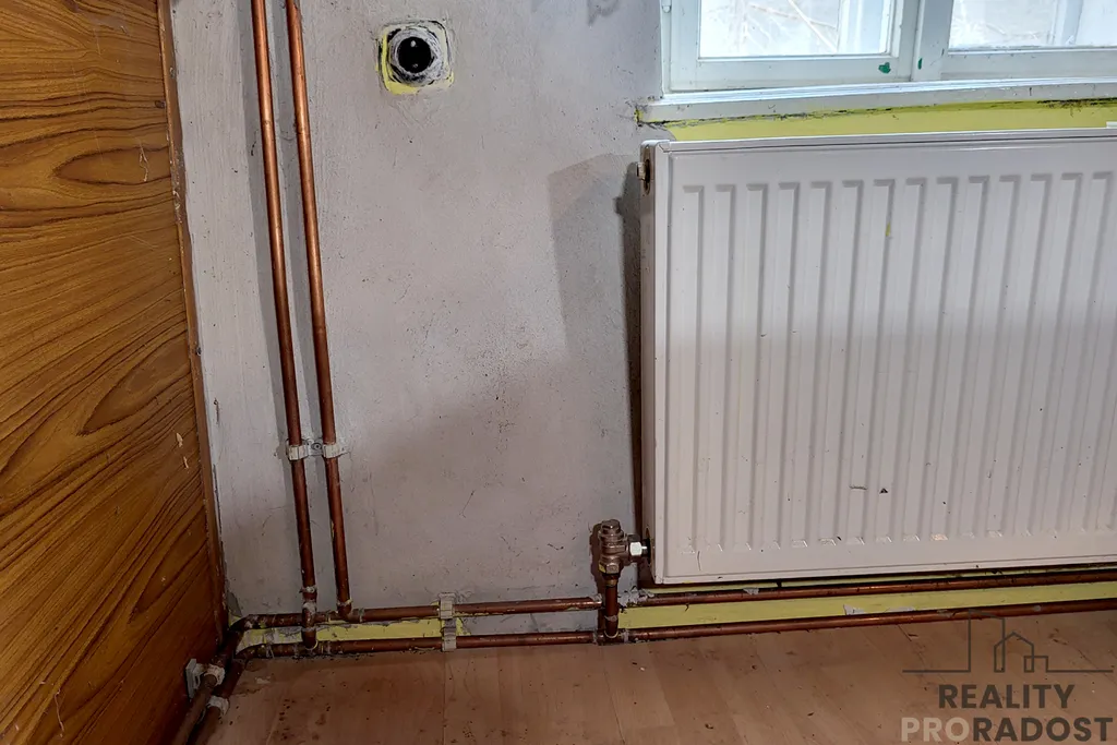 ústřední vytápění s plynovým kotlem a radiátory s rozvody v mědi